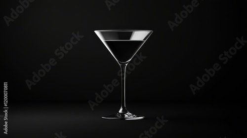 A sleek, elegant martini glass is shown against a black backdrop, emphasizing its shape and material, This image can be used for bar menus, cocktail recipes, or promotional materials for events,