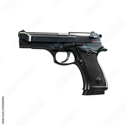 A sleek formidable handgun glistening ominously symbolizing power and on transparent background