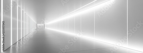 A sleek futuristic corridor with glowing panels and light strips, combining minimalism and ultramodern aesthetics for a sci-fi vibe.