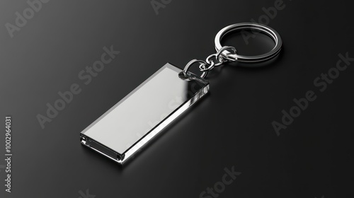 A sleek, metallic keychain with a rectangular tag, ideal for personalization or branding.