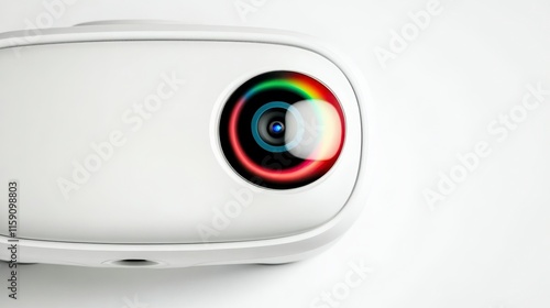 A sleek, modern camera features a vivid lens, showcasing a unique design with vibrant colors and minimalistic style.