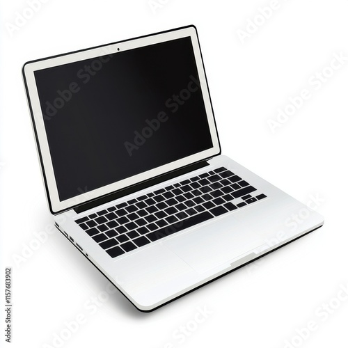 A sleek, modern laptop with a silver finish and a black keyboard, isolated on a white background.
