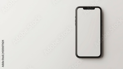 A sleek, modern smartphone rests on a minimalist surface, showcasing a blank screen that emphasizes simplicity and elegance.