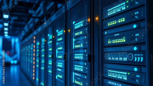 A sleek server rack with glowing indicators, embodying modern technology and innovation.