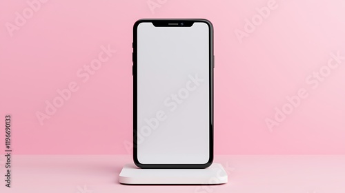 A sleek smartphone is displayed on a wireless charger against a soft pink background, showcasing its minimalist design.