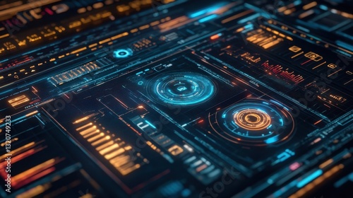 A sleek technology-themed background with ultra-modern glowing UI elements