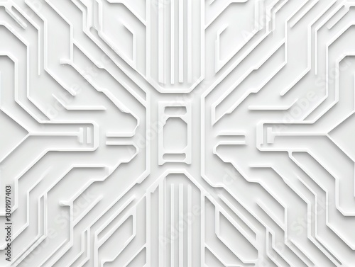 A sleek, white background featuring intricate circuit patterns, symbolizing technology and innovation in a modern design.