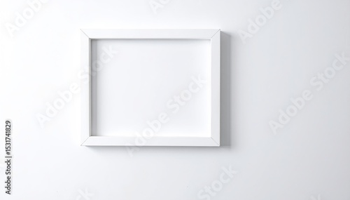 A sleek white frame elegantly hangs on a textured wall, showcasing its minimalist design, perfect for displaying cherished photos or artwork.