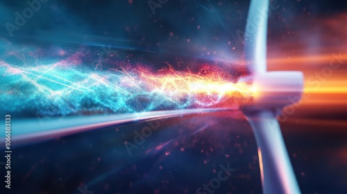 a sleek wind turbine blade emitting vibrant quantum energy waves, showing a powerful connection between advanced science