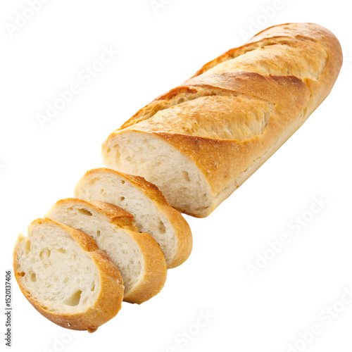 A sliced baguette isolated on a transparent background