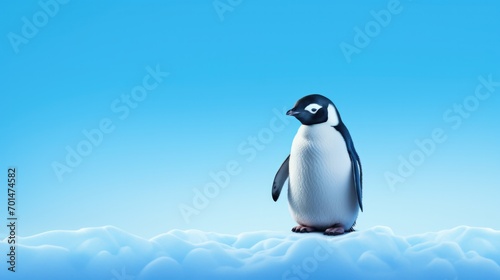 A small penguin with striking colors against an intense blue backdrop generative ai