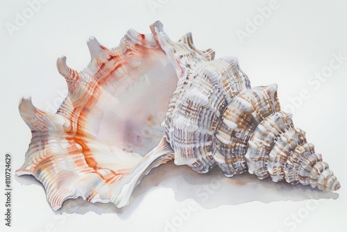 A small watercolor of a delicate seashell, intricate and unique, isolated minimal with white background
