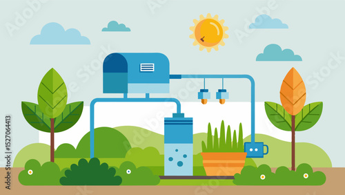 A smart irrigation system that utilizes recycled organic waste as fertilizer reducing the need for chemical fertilizers and promoting sustainable farming practices.. Vector illustration