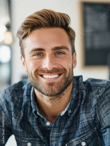 A smiling man with a beard looks directly at the camera, conveying friendliness and approachability