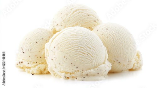 A smooth, creamy scoop of vanilla ice cream with visible specks of vanilla bean, Its rich texture and enticing appearance captured in exquisite detail