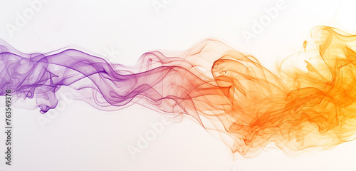 A smooth gradient of orange and lilac smoke merging together, creating a warm, sunset-like ambiance over white