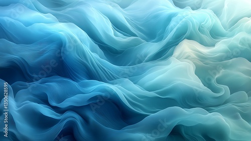 A smooth gradient of silky waves in ocean blue, teal, and seafoam green, resembling underwater currents,