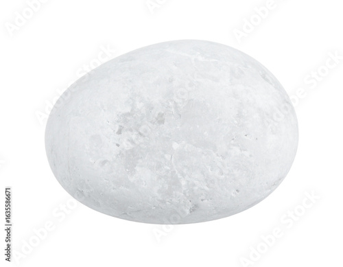 A smooth white beach pebble, rounded by ocean waves, with a simple and clean appearance, isolated on a white background.