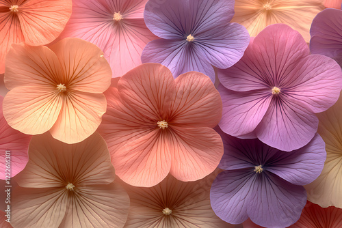 A soft and dreamy background of real flowers in pastel tones, featuring delicate petals in shades of pink, peach, lavender, and cream.