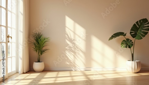 A soft beige studio room with natural light creates a calm, serene space.