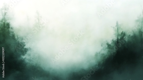 A soft, blurred misty morning in a forest with a clear, open space for text