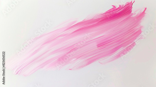 A soft, blurred stroke of pastel pink acrylic paint, light and airy, on a solid white background, evoking the gentle hue of dawn.