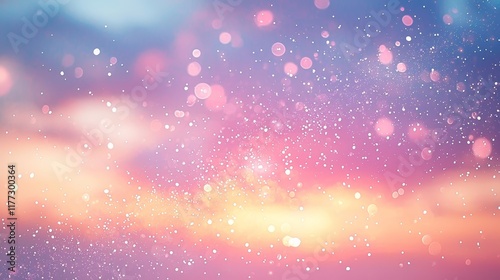 A soft glittery bokeh effect over a pastel-colored twilight sky, stars fading into the distance, creating a whimsical and serene atmosphere