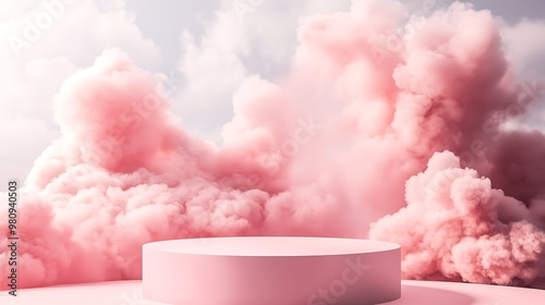 A soft pink cloud backdrop with a circular platform, ideal for presentations or photography.