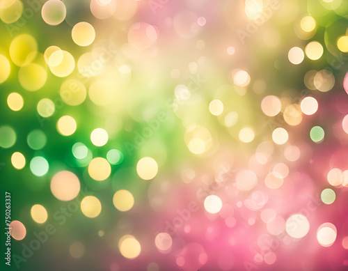 A soft spring bokeh light blur background in pink, green and gold colors.