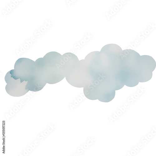 A soft watercolor cloud in shades of light blue and white. The cloud has a dreamy, ethereal look, making it ideal for use as backgrounds, weather-themed designs, children's illustrations, and art comp