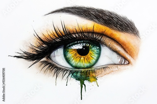 A soft watercolor painting of an eye, with pastel colors blending gently in the iris and lashes