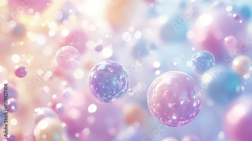 A soft-focus background of pastel-colored balloons floating in the breeze, creating a festive and whimsical atmosphere.