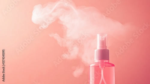 A soft-focus mist spreading from a deodorant spray bottle, blending into a pastel peach background