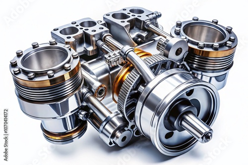 A solitary aviation piston engine cylinder stands against a pristine white backdrop.
