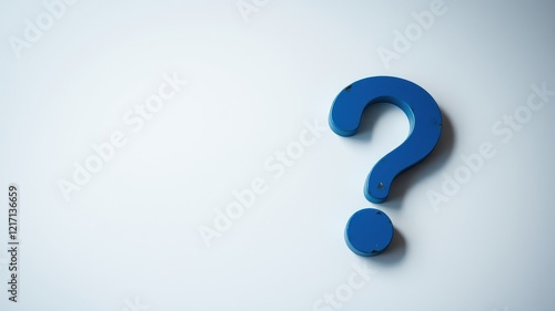 A solitary blue question mark, slightly worn, sits on a minimalist white background, symbolizing inquiry and uncertainty.