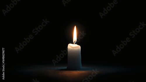 A solitary flame glows, its warm light piercing the profound darkness of a black background