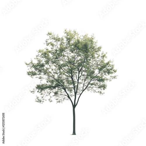 A solitary tree with lush green leaves stands against a stark white backdrop, creating a minimalist natural image.