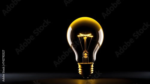 A solitary yellow light bulb glowing brightly against a deep black background, symbolizing the illumination of profound thoughts.