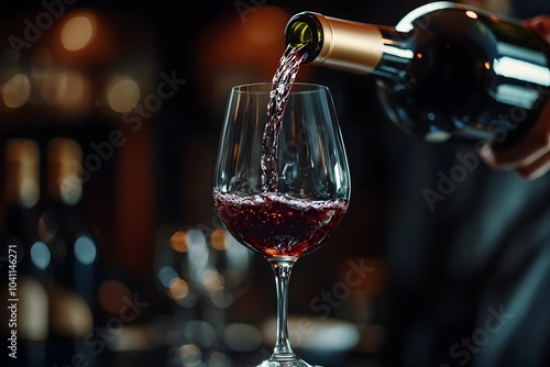 A Sommelier Pouring a Perfect Stream of Red Wine into a Crystal Glass Capturing the Elegance and Precision of Wine Service