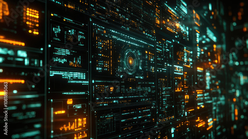 A sophisticated digital interface showcases vibrant data visualizations and glowing circuits, reflecting advanced technology at work