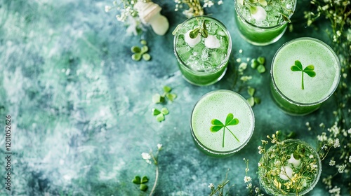 A sparkling St. Patricks Day party with green drinks, shamrocks, and festive hats