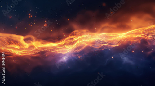 A spectacular cosmic scene, flowing waves of orange and blue gases, scattered with twinkling stars, deep space background