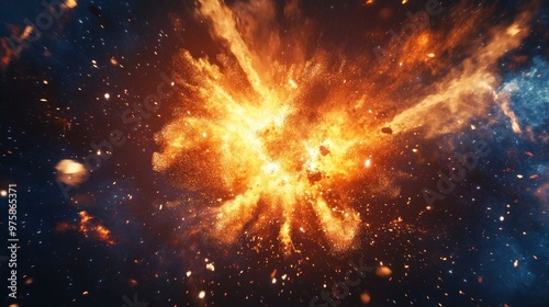 A spectacular explosion in deep space showcasing vivid colors and cosmic energy during a stellar event
