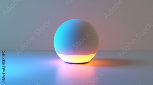 A spherical smart device emitting soft blue and orange light on a minimalist surface.