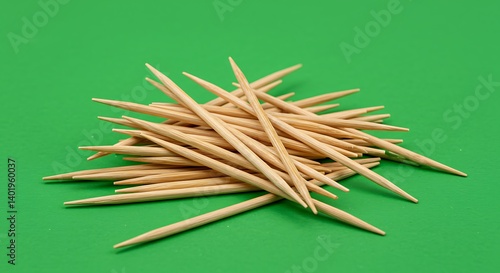 A Spiky Harmony: Wooden Toothpicks on Green AI Generated