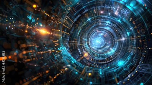 A spiral of lights and numbers that is blue and orange