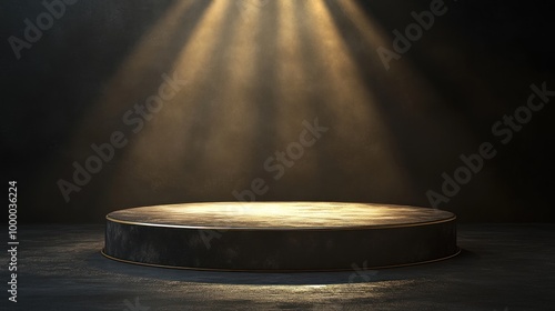 A spotlighted circular stage set against a dark background, ideal for performances or presentations.
