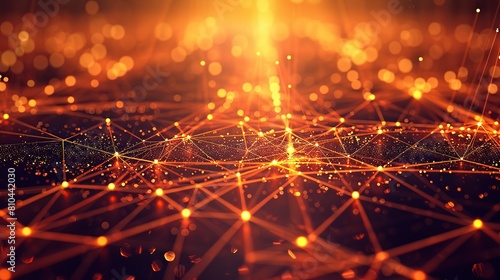 A sprawling network of orange and yellow light points connected by thin radiant beams over a shadowy backdrop specifically leaving the lower half for text placement