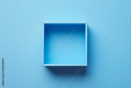 A square blue empty box is located in the center of an entirely plain blue background
