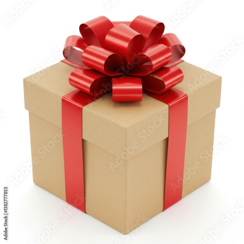 A square gift box wrapped with a red ribbon and a bow on a white surface for a special occasion